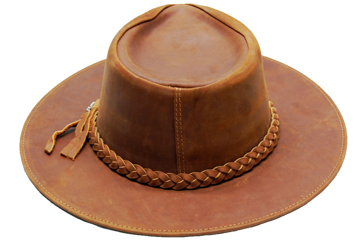 También tenemos sombreros de cuero en color café claro y negro.